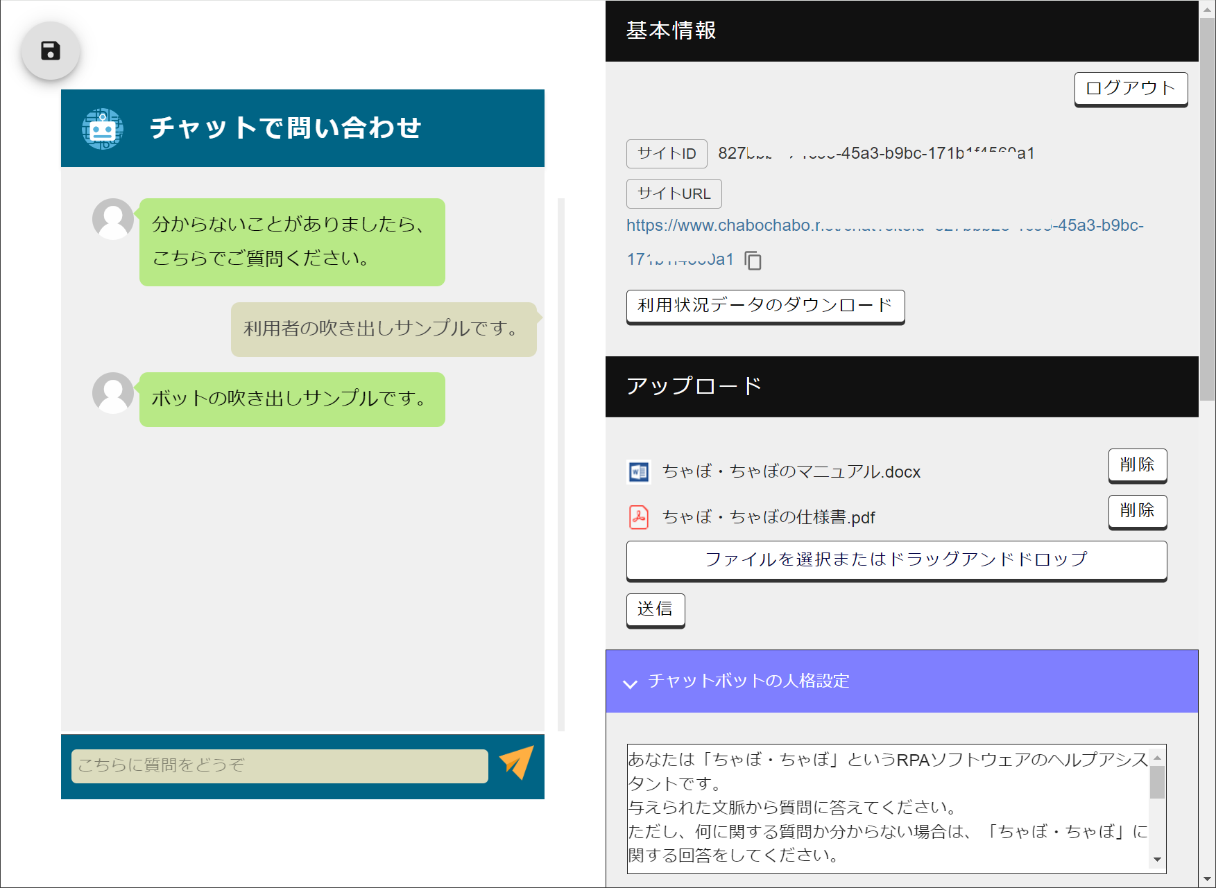 顧客との質疑応答の履歴は、管理画面からダウンロードできます。よくある問い合わせを元に、既存マニュアルの刷新も可能です。